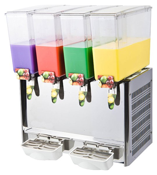 - Сокоохладитель с 4 съемными емкостями из прозрачного поликарбоната объемом по 9 л.