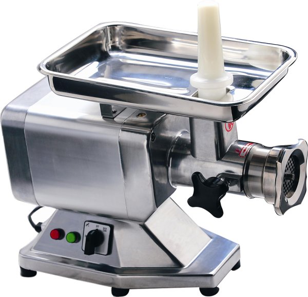 - Конструктивные особенности: съемная мясорубочная голова №22; приемный лоток с загрузочной горловиной; толкатель; прижимная гайка с крупной накаткой для быстрой фиксации; резиновые опоры для виброизоляции; вентиляция двигателя